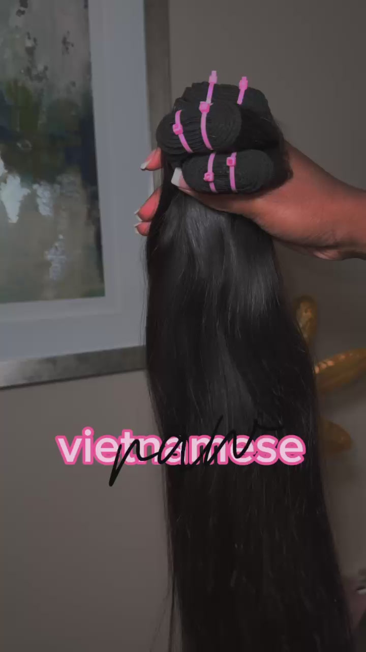 Our "NATURAL STRAIGHT" Vietnamese extensions are extremely SILKY and SMOOTH. These extensions are the definition of LUXURY. The cuticles are intact and flowing in the same direction which minimizes shedding and tangling.